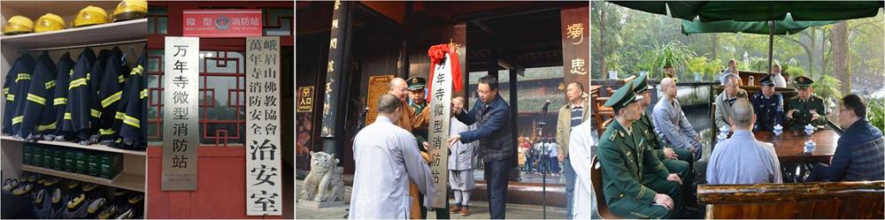 11月7日,景区消防大队组织召开2017年峨眉山寺院消防技能比武竞赛暨寺院微型消防站建设现场会。会上,乐山市消防支队和峨眉山景区管委会为8座寺院授予了微型消防站牌匾。在被授予微型消防站牌匾的8座寺院中,万年寺、伏虎寺、洪椿坪、清音阁4座寺院为国家级重点文物保护单位,洗象池、仙峰寺、圣水禅院3座寺院为省级重点文物保护单位。